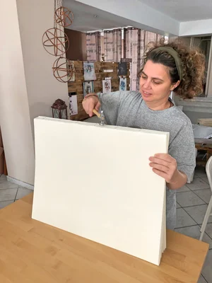 I decided to use Dali paper, which is a great luxurious paper, but it is really heavy. I dedicated an 1 x3 m bench for this project only and begun the journey! I have never sewn such a large book - my previous record was a 40 x50 cm. Sewing proved to be a walking-around-the-bench process, but the book block turned out great! Until I made the dumpest decision to trim it with just an x-acto knife, a ruler and my bare hands! Oh yes, I did not managed to make a straigh edge, so I had to throw away the book block and start over the project! I have the discarded book block on my couch and I will do something with it someday! LOL